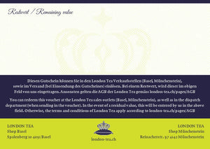 Diese Gutscheine können in den Verkaufsstellen Tee-Shop Basel am Spalenberg 10 sowie im Tee-Shop Zürich, Gerbergasse 7 und im Tee-Shop und Tee-Manufaktur Münchenstein an der Reinacherstrasse 97 eingelöst werden.