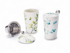 Das stilvolle Dekor dieser Teaeve® Kräuterteetasse ist inspiriert von der Schönheit der Natur! Das filigrane Eukalyptus- und Ginkgomotiv ist zart gestaltet und die silbrig-grüne Farbpalette in Kombination mit der matten Oberflächenveredelung verleihen dem Artikel eine exklusive und hochwertige Optik. Das fein gelaserte Edelstahlsieb ermöglicht die Teezubereitung direkt in der Tasse. Die Teaeve® schenkt Wärme und Wohlfühl-Momente. Egal ob auf der Couch oder im Büro.